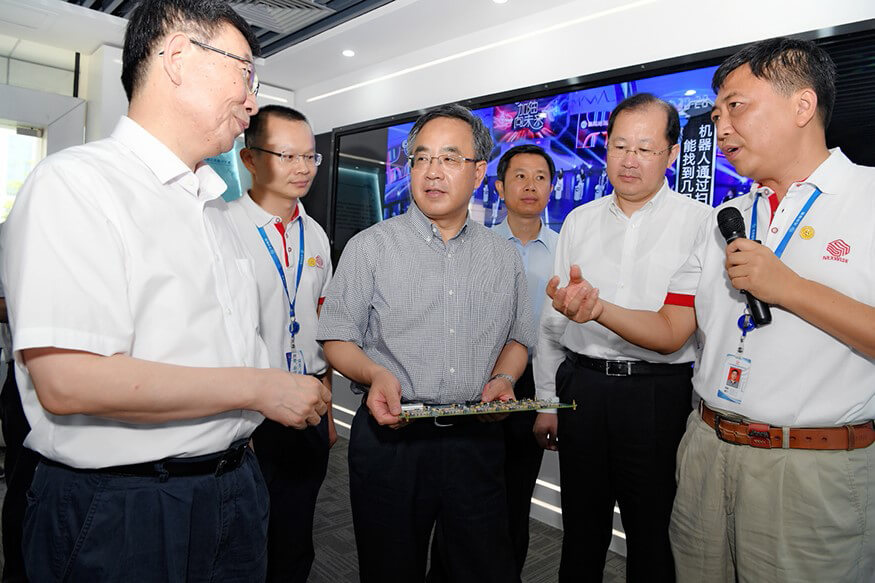 2017年7月29日上午,中央政治局委员、广东省委书记胡春华在广东省委副书记、广州市委书记任学峰、广东省委秘书长江凌、副省长黄宁生等领导陪同下赴广州市企业调研,今年会jinnianhui(集团)智能科技有限公司官网作为被调研企业之一,公司董事长孙超向胡春华书记介绍了公司的发展历程,研发中心总经理朱勇杰介绍了公司自主研发的专用高性能计算平台这一核心技术的研发历程、国内外的行业地位、发展前景等。